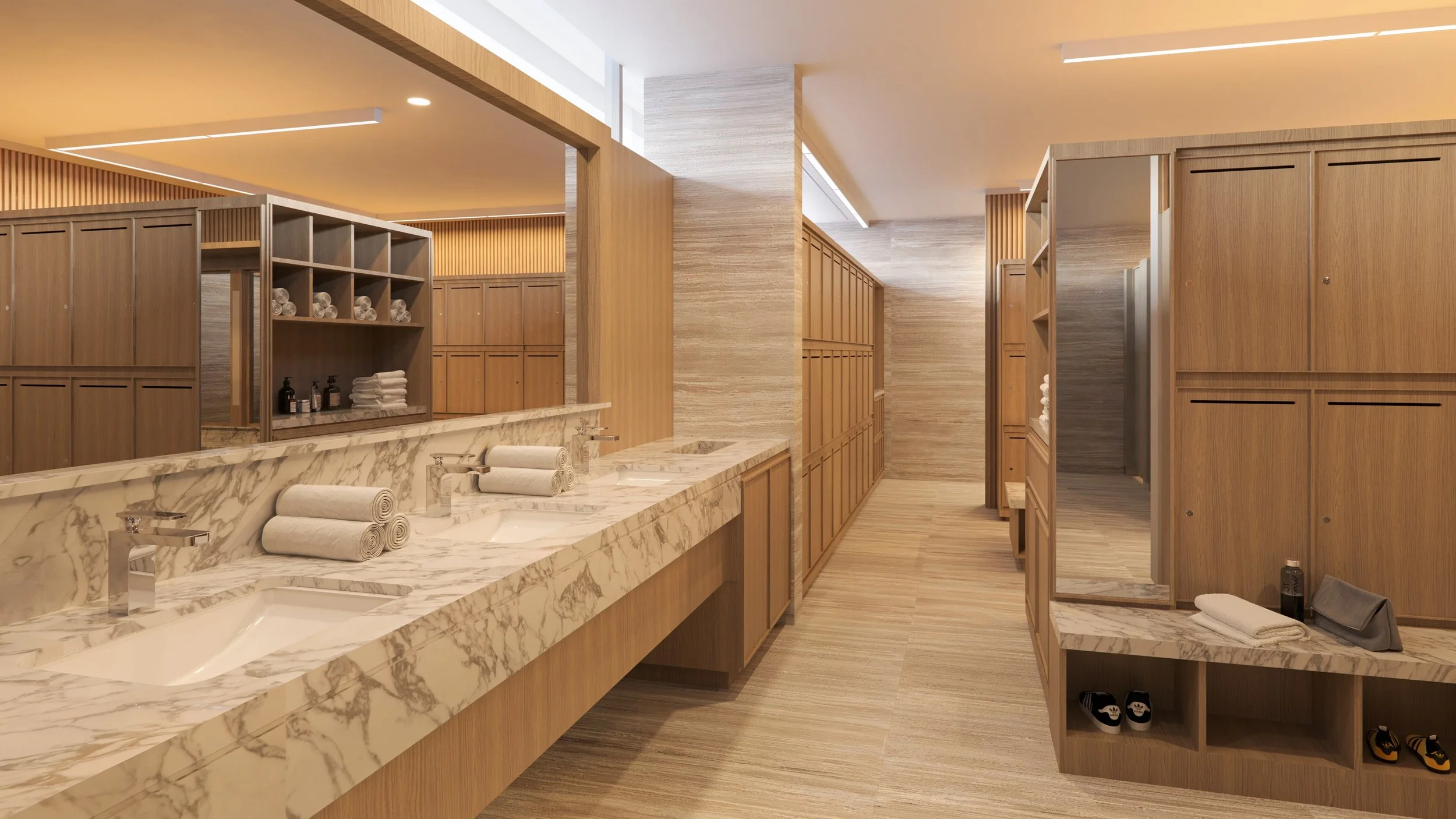 Disfruta de vestidores impecables con todas las comodidades, toallas refrescadas con eucalipto y productos premium de cuidado personal. Rejuvenece en nuestras saunas y salas de vapor como parte de tu experiencia integral de bienestar.